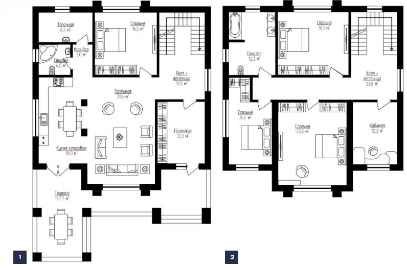 Многокомнатные дома, где расположены 6 и более комнат в 2 этажа – это отличный вариант для больших семей. Коттеджные поселки Краснодара предлагают покупателям множество планировочных решений домов, для удобной и комфортной жизни.