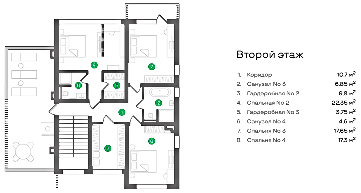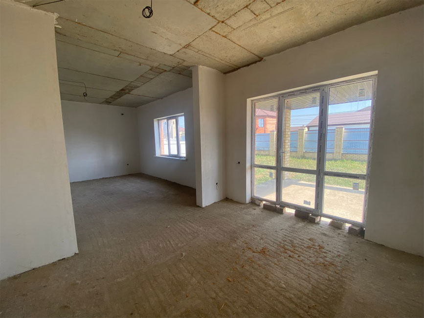 Электроразводка, тёплые полы, газовый котёл, радиаторы отопления, монолитный фундамент, отмостка вокруг дома, забор по периметру, септик, терраса 24 кв. м., терраса