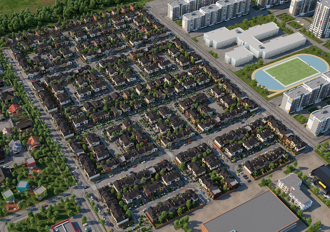Вариантов приобретения и строительства недвижимости тоже несколько. Во-первых, можно купить участок в первой зоне и построить свой дом самостоятельно. Но большую часть микрорайона будет занимать именно “клубный поселок” — здесь уже продают готовые дома: коттеджи, дуплексы и таунхаусы.