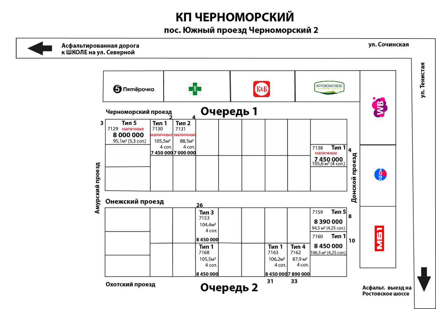 Неподалеку от «Черноморского» расположено много коттеджных поселков, что стимулирует развитие инфраструктуры. Пока рядом с домами мало объектов, что можно связать с относительной удаленностью КП от поселка Южный.
