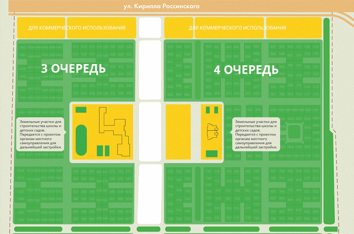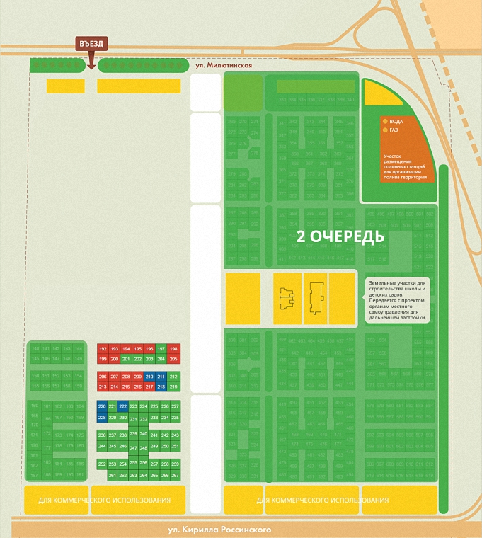 Сегодня застройщик активно ведет продажу земельных участков первой очереди (всего в очереди 139 участков, в общей сложности в поселке собираются реализовать 191 участок и шесть очередей). Собственник может выбрать землю площадью от 4, 5 соток. Самый главный плюс участков в “Кубанском стане” - к границам каждого надела подведены все коммуникации. Каждый участок будет газифицирован, подключен к центральной системе электроснабжения и системе водоснабжения, проложенной от собственной артезианской скважины.