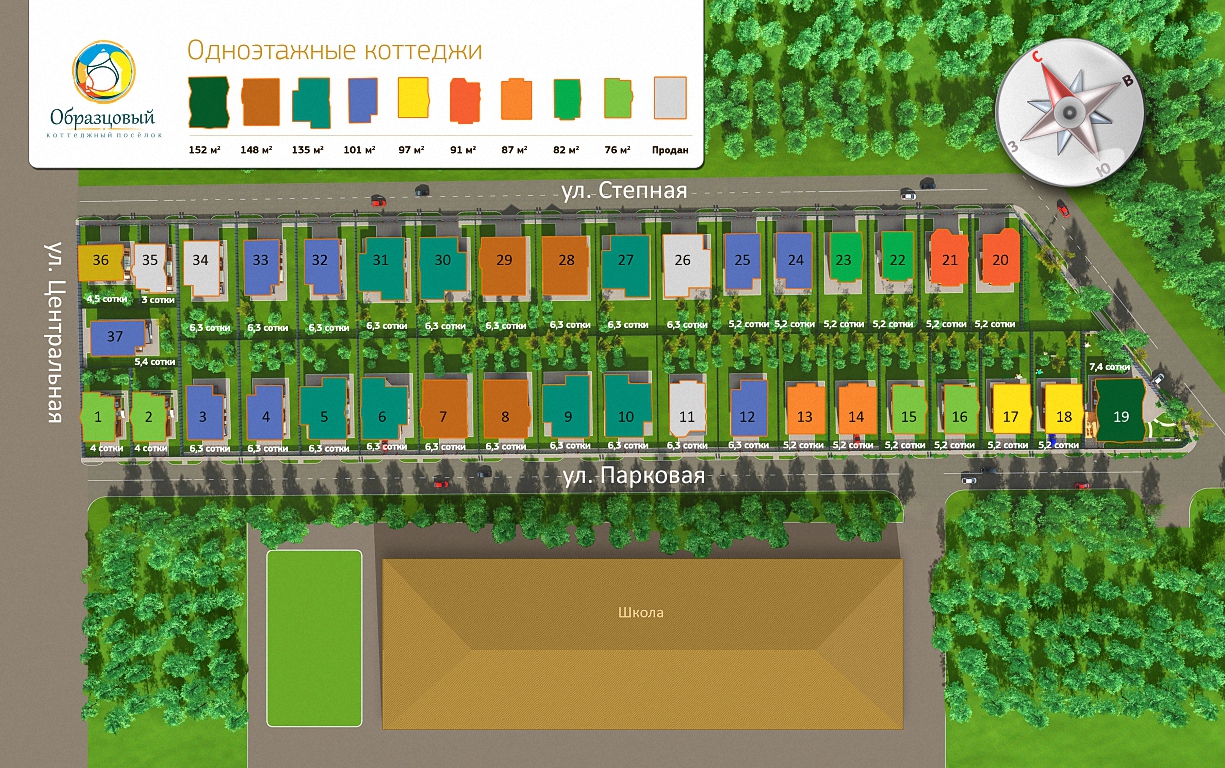 Коттеджный поселок «Образцовый» расположен в Карасунском округе Краснодара, неподалеку от Знаменского микрорайона. На закрытой территории в 2,15 гектара расположены одноэтажные дома класса “комфорт” и отдельные участки от 4 до 8 соток.