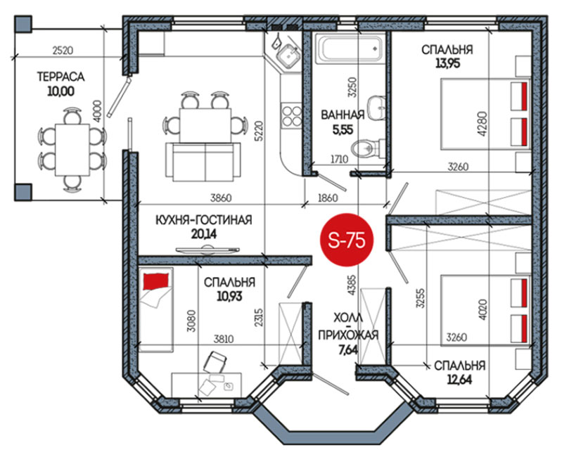 КП комфорт-класса «Вишня» состоит из 132 домов площадью от 75 до 173 м2. Можно выбрать разные участки площадью 6 соток. Доступны три архитектурных проекта в один или два этажа с разными планировками. Все проекты включают просторную террасу для отдыха на свежем воздухе.