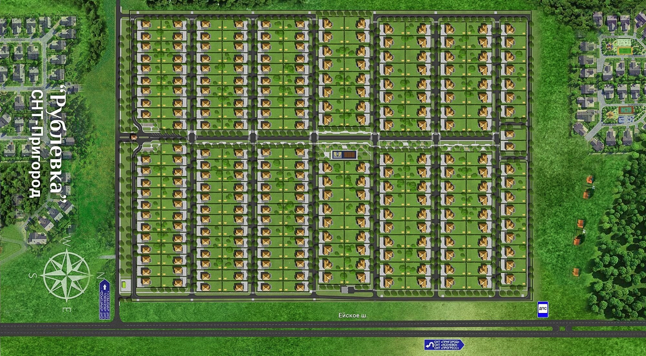 Были в поселке. Дороги асфальтированы, строители суетятся. В таком месте без собственной машины жить нереально.Нарезка земли хорошее есть место и для дома, небольшого сада и гаража.