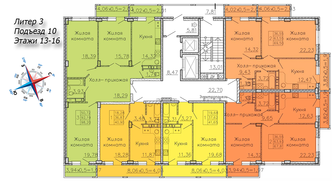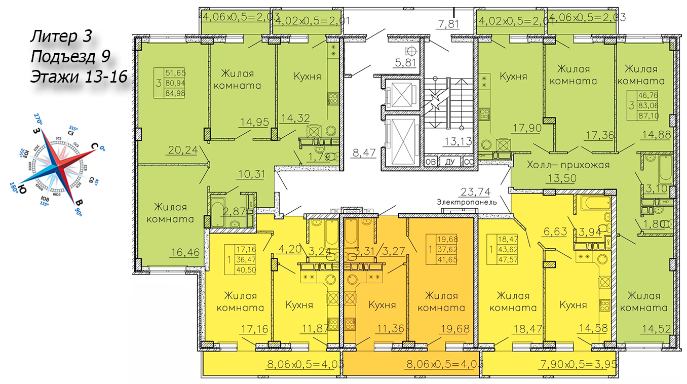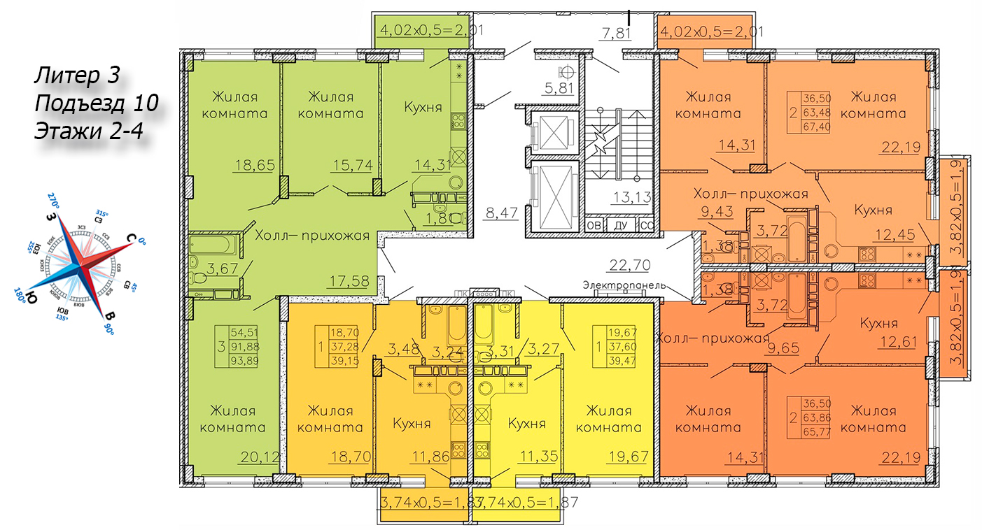 К продаже предлагаются 1-, 2-, 3-комнатные квартиры с лоджиями, общей площадью от 38,3 до 105,1 кв.м. Преобладают “однушки”. Квартиры сданы с предчистовой отделкой, включающей: стяжку полов, оштукатуривание стен, подключение и разводку коммуникаций, установку двойных стеклопакетов, счетчиков учета потребления воды и электроэнергии, радиаторов отопления, входной металлической двери.