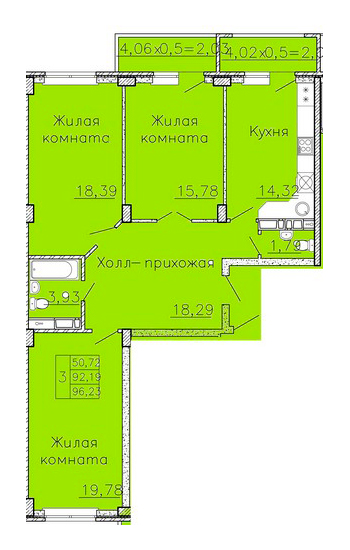| 3 | 96.23 / 50.72 м² | от 9 141 850 руб. (95 000 руб./м²) | Планировка | |