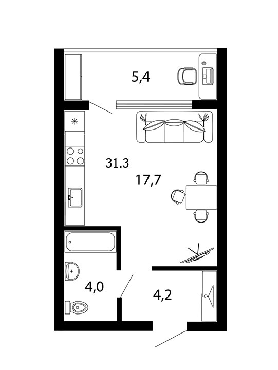 | студия | 31.3 / 17.7 м² | от 3 280 000 руб. (104 792 руб./м²) | Планировка | |