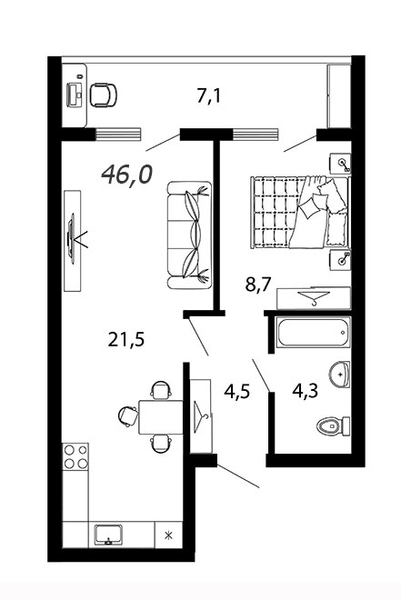 | 1 | 46 / 30.2 м² | от 4 800 000 руб. (104 348 руб./м²) | Планировка | |