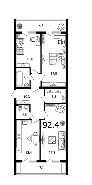 | 3 | 92.3 / 46.2 м² | от 9 000 000 руб. (97 508 руб./м²) | Планировка |