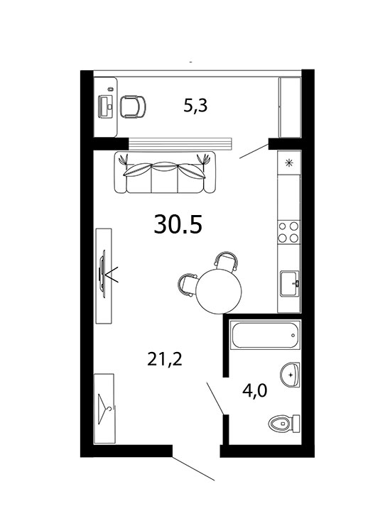 | студия | 30.5 / 21.2 м² | от 3 200 000 руб. (104 918 руб./м²) | Планировка | |