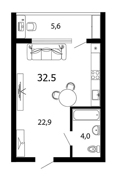 | студия | 32.5 / 22.9 м² | от 3 400 000 руб. (104 615 руб./м²) | Планировка | |