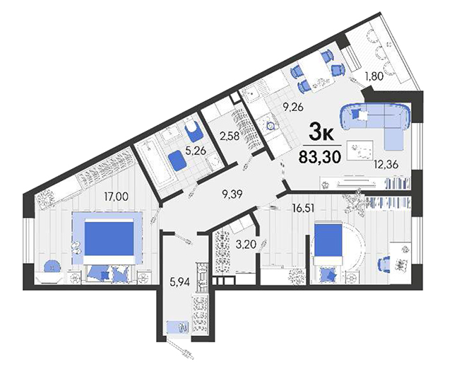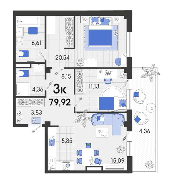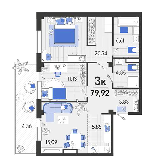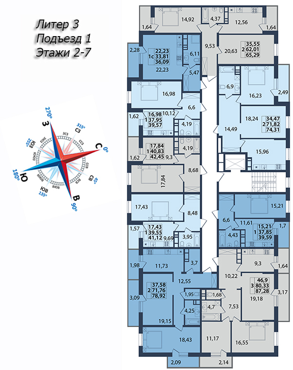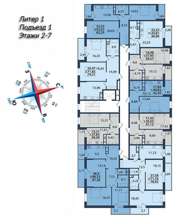 | 2 | 79.92 / 31.84 м² | от 11 348 640 руб. (142 000 руб./м²) | Планировка | |
