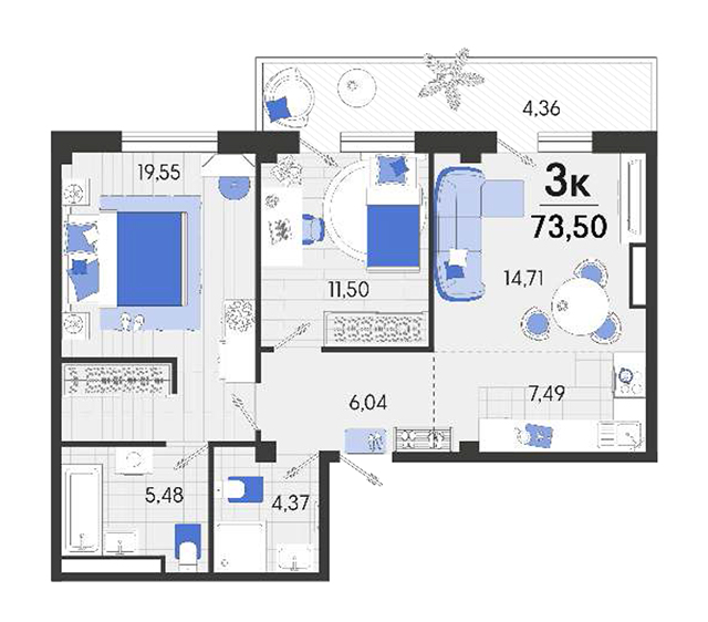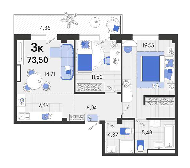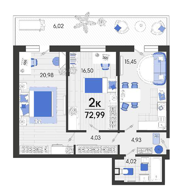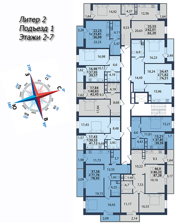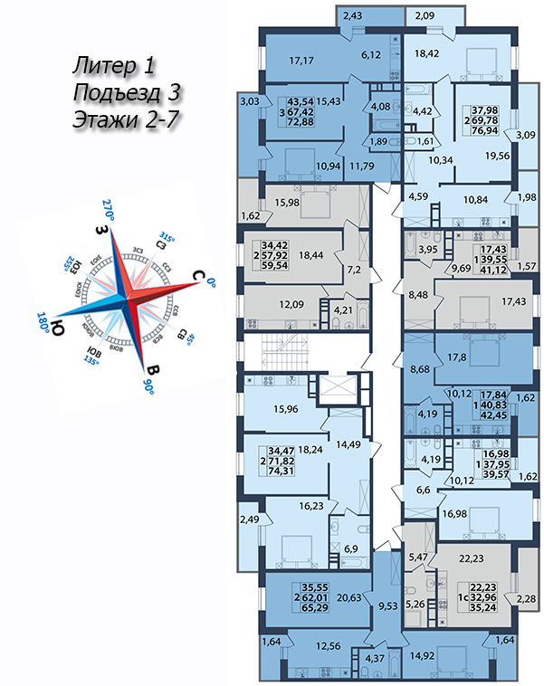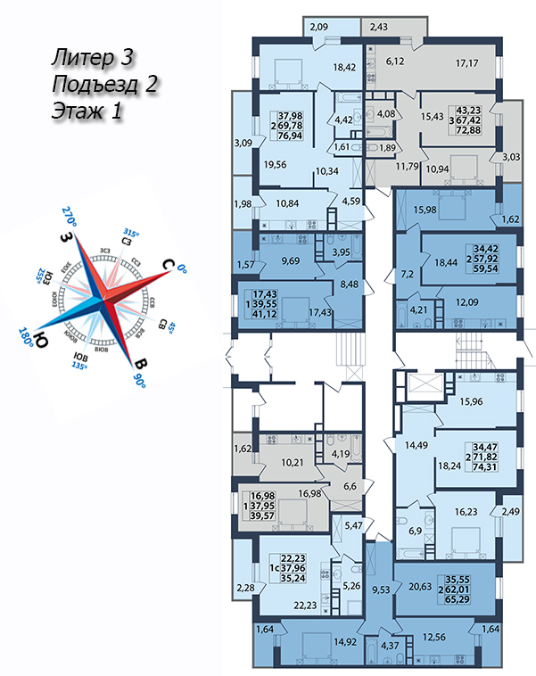 | 2 | 72.99 / 37.48 м² | от 9 196 740 руб. (126 000 руб./м²) | Планировка | |