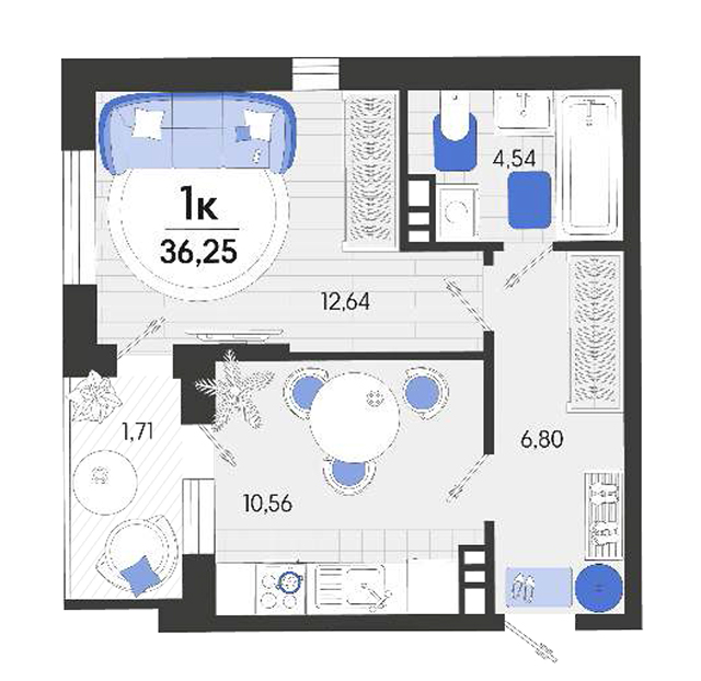 | 1 | 36.25 / 12.64 м² | от 6 017 500 руб. (166 000 руб./м²) | Планировка | |