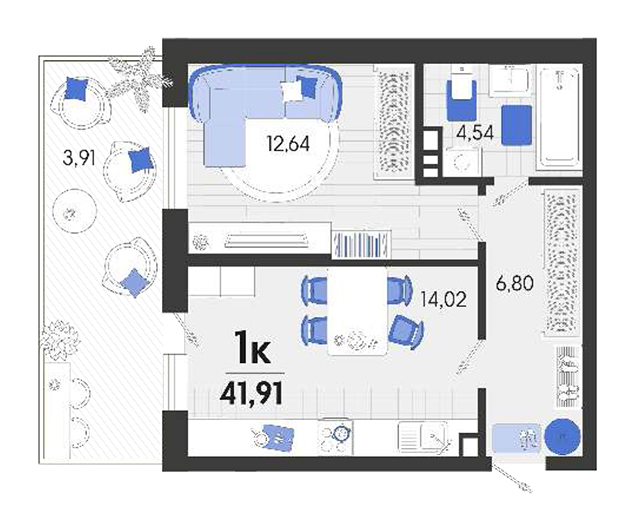 | 1 | 41.91 / 12.64 м² | от 6 705 600 руб. (160 000 руб./м²) | Планировка | |