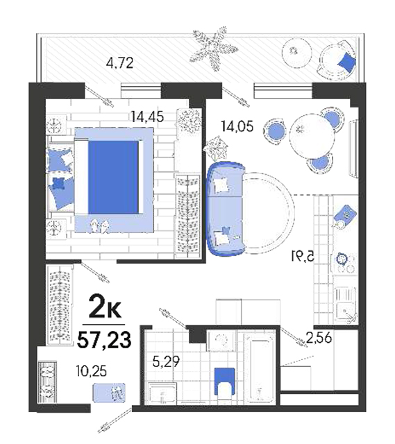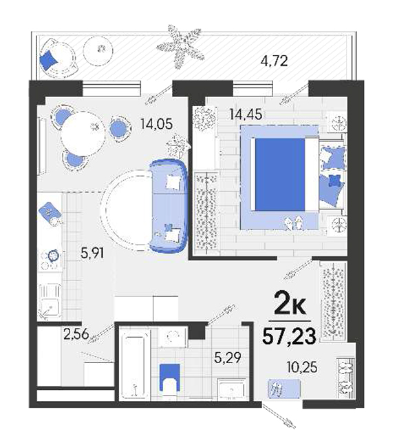 | 1 | 57.23 / 14.45 м² | от 7 668 820 руб. (134 000 руб./м²) | Планировка | |