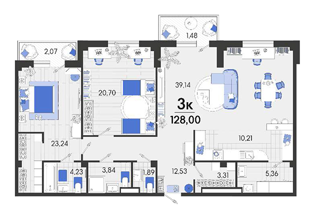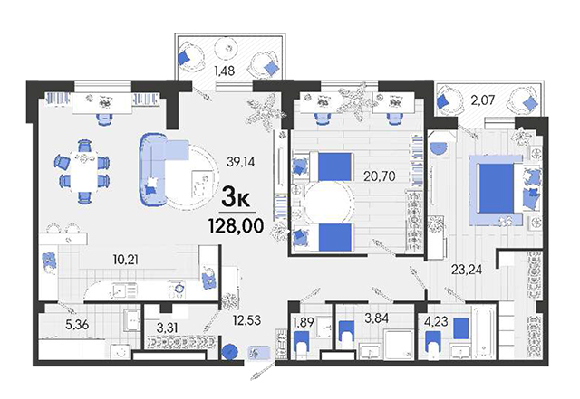 | 2 | 128 / 43.94 м² | от 16 128 000 руб. (126 000 руб./м²) | Планировка |