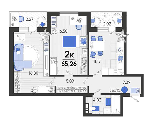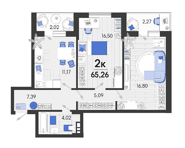 | 2 | 65.26 / 33.3 м² | от 8 614 320 руб. (132 000 руб./м²) | Планировка | |