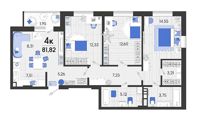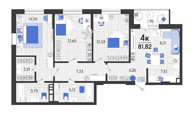 | 3 | 81.82 / 39.48 м² | от 9 900 220 руб. (121 000 руб./м²) | Планировка |