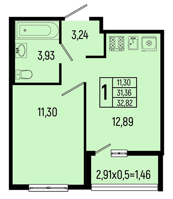 | 1 | 32.82 / 11.30 м² | от 9 189 600 руб. (280 000 руб./м²) | Планировка | |