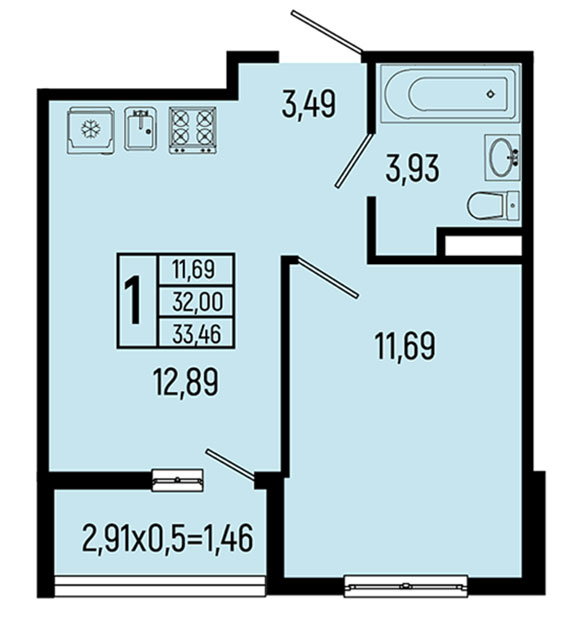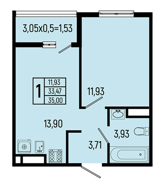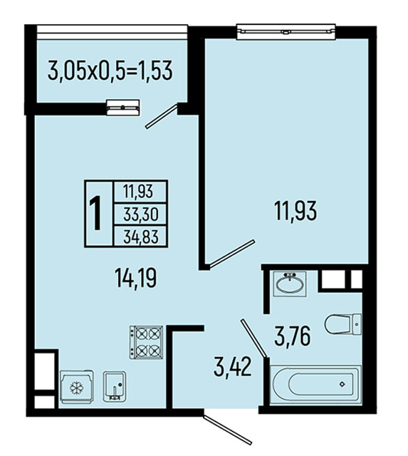 | 1 | 33.46 / 11.69 м² | от 9 201 500 руб. (275 000 руб./м²) | Планировка | |