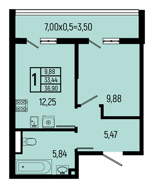 | 1 | 36.90 / 9.88 м² | от 9 963 000 руб. (270 000 руб./м²) | Планировка | |