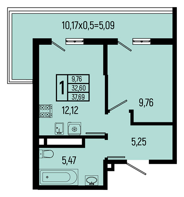 | 1 | 37.69 / 9.76 м² | от 9 987 850 руб. (265 000 руб./м²) | Планировка | |