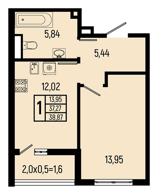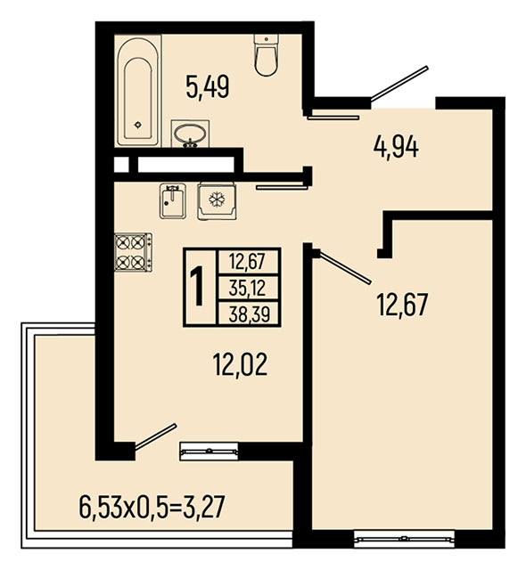 | 1 | 38.39 / 12.67 м² | от 10 173 350 руб. (265 000 руб./м²) | Планировка | |