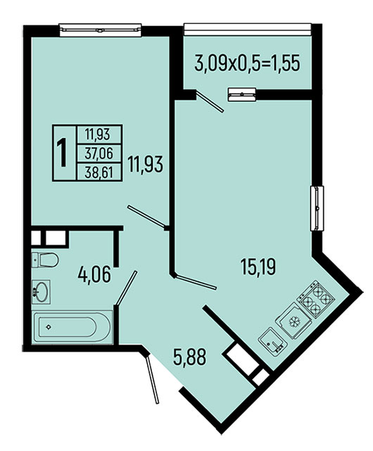 | 1 | 38.52 / 11.93 м² | от 10 207 800 руб. (265 000 руб./м²) | Планировка |