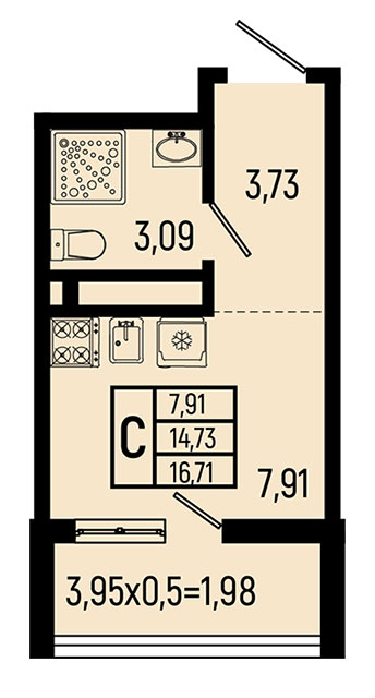 | студия | 16.71 / 7.91 м² | от 6 717 420 руб. (402 000 руб./м²) | Планировка | |