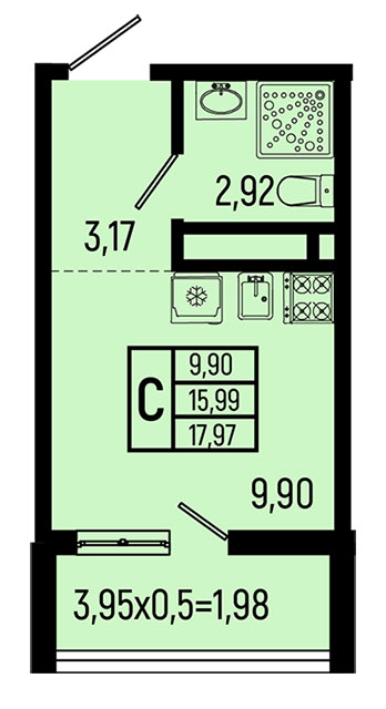| студия | 17.97 / 9.90 м² | от 7 008 300 руб. (390 000 руб./м²) | Планировка | |