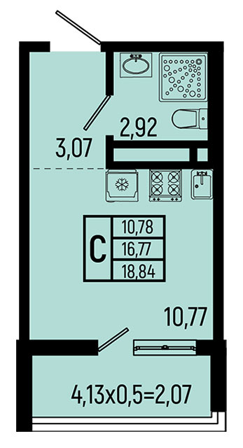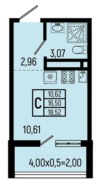 | студия | 18.52 / 10.62 м² | от 7 500 600 руб. (405 000 руб./м²) | Планировка | |