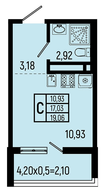| студия | 19.06 / 10.93 м² | от 7 528 700 руб. (395 000 руб./м²) | Планировка | |