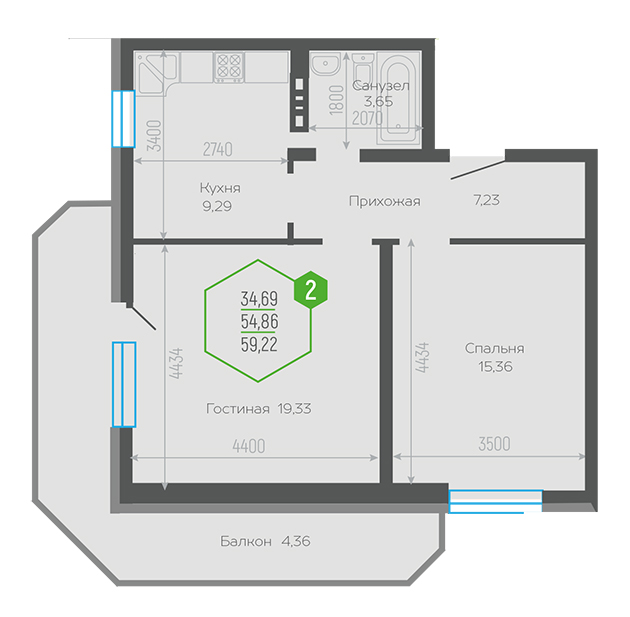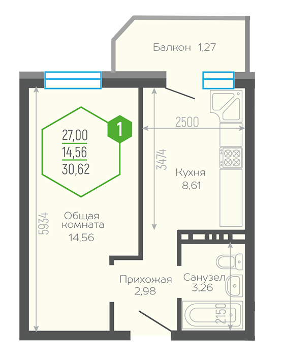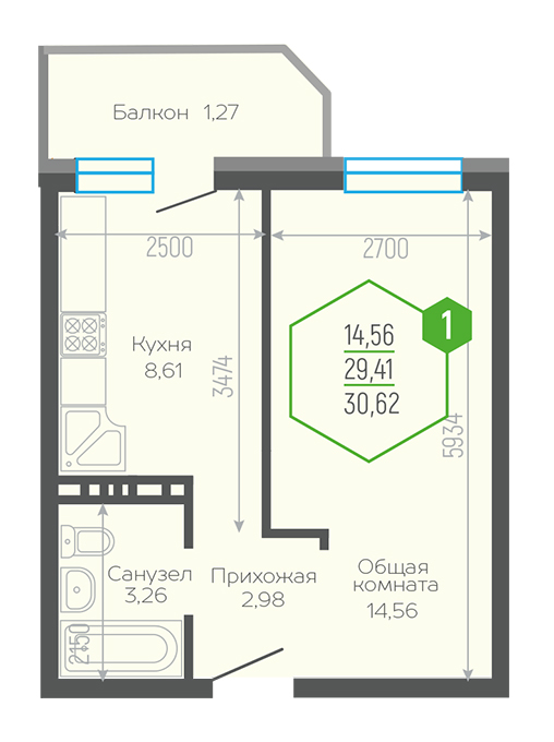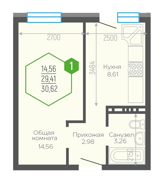 | 1 | 29.93 / 14.56 м² | от 3 890 900 руб. (130 000 руб./м²) | Планировка | |