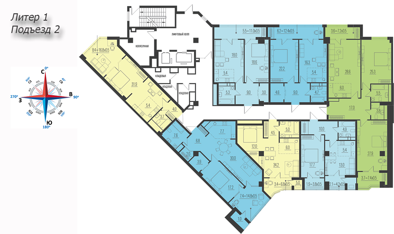 | 2 | 68.7 / 39.4 м² | от 17 934 000 руб. (261 048 руб./м²) | Планировка | |