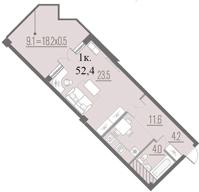 | 1 | 52.4 / 23.5 м² | от 15 116 500 руб. (288 483 руб./м²) | Планировка | |