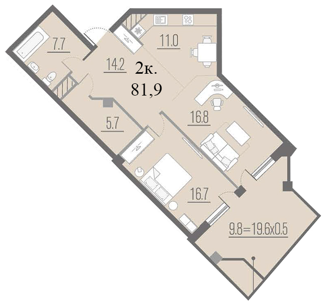 | 2 | 81.9 / 33.5 м² | от 23 240 700 руб. (283 769 руб./м²) | Планировка | |