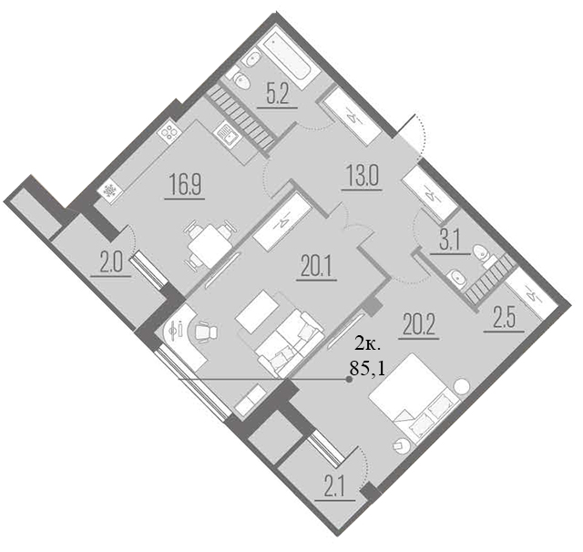 | 2 | 85.1 / 40.3 м² | от 23 636 800 руб. (277 753 руб./м²) | Планировка | |