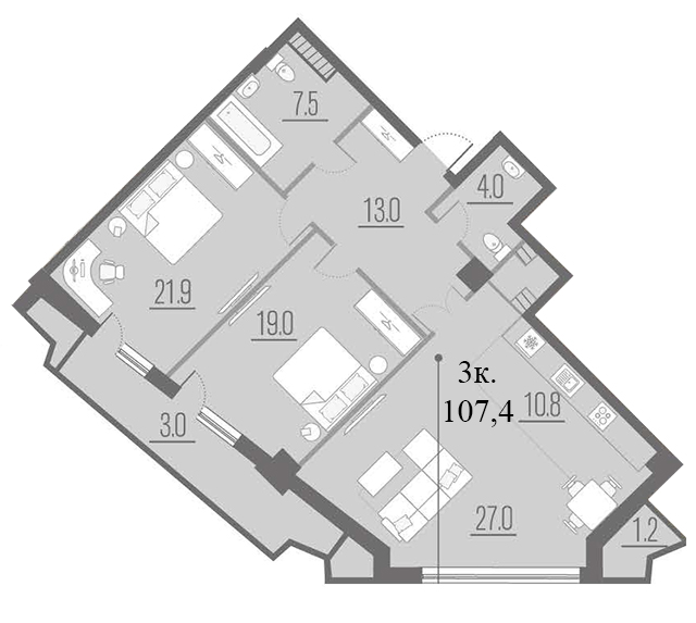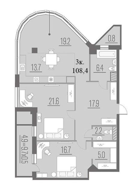| 3 | 108.4 / 57.5 м² | от 29 123 500 руб. (268 667 руб./м²) | Планировка | |