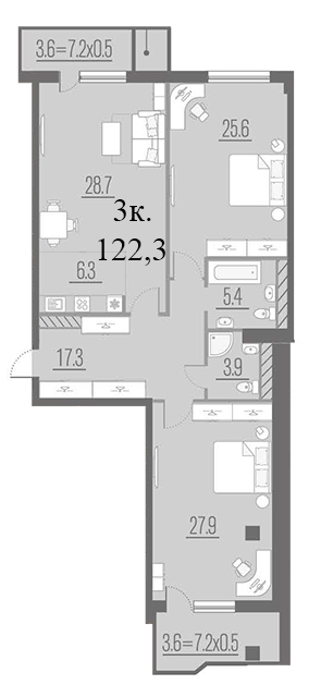 | 3 | 122.3 / 82.2 м² | от 31 450 500 руб. (257 159 руб./м²) | Планировка | |