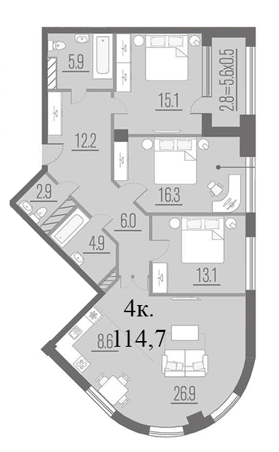 | 4 | 114.7 / 71.4 м² | от 29 971 500 руб. (261 303 руб./м²) | Планировка |