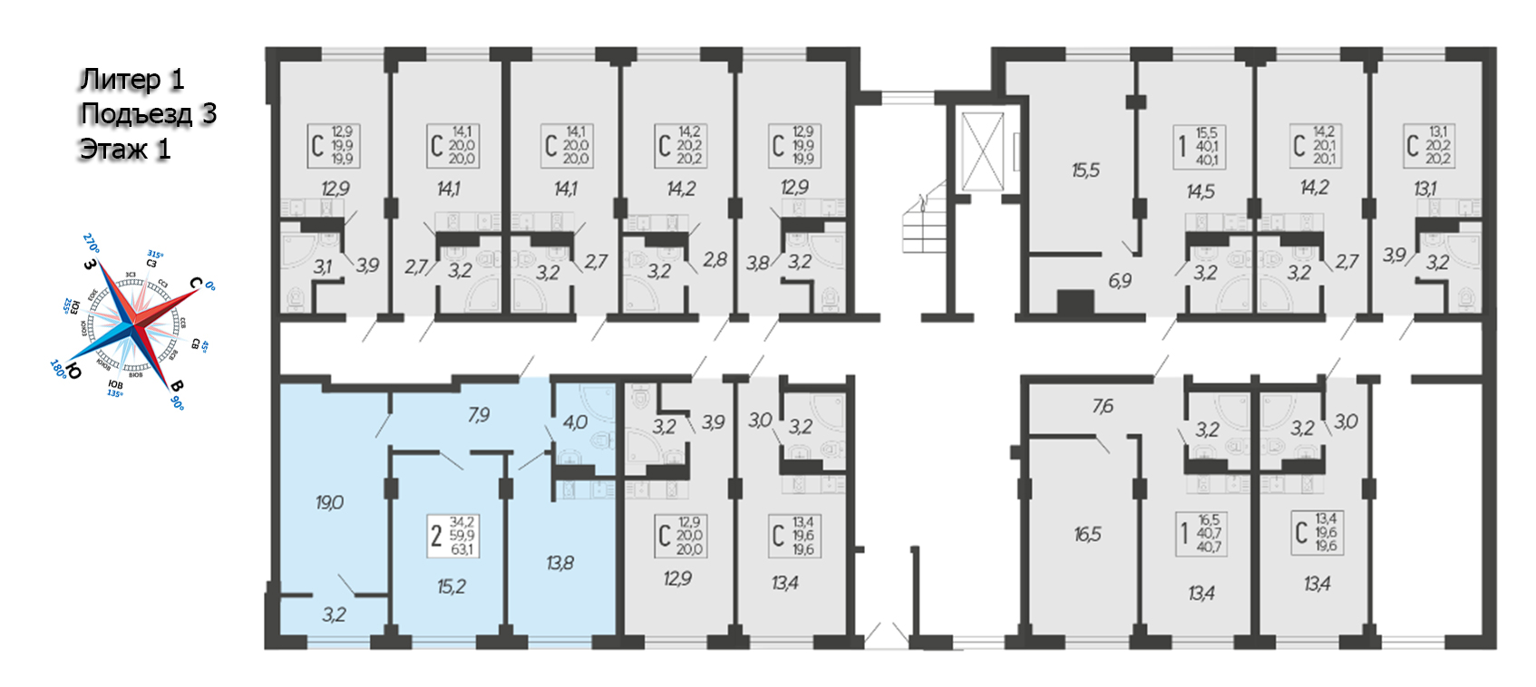 | свободная планировка | 25.5 м² | от 1 785 000 руб. (70 000 руб./м²) | Этаж: 1 |