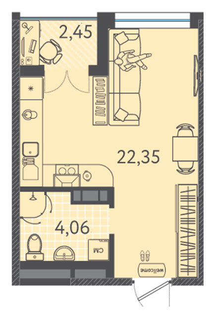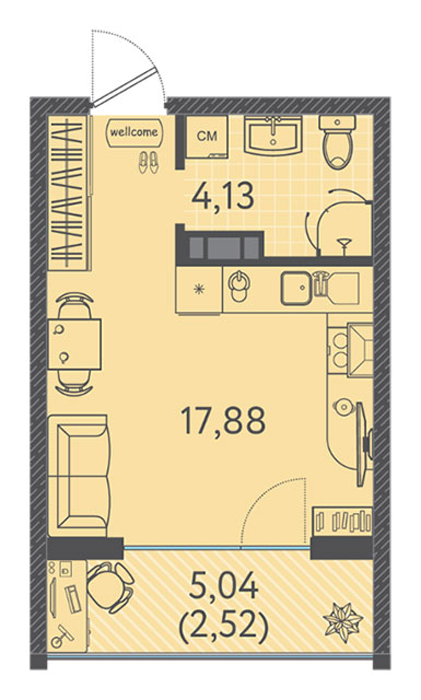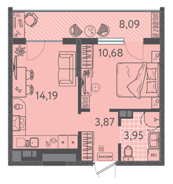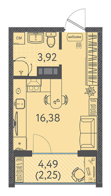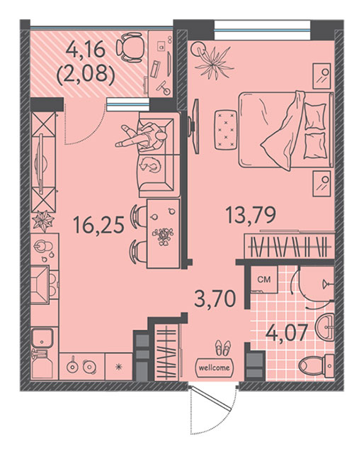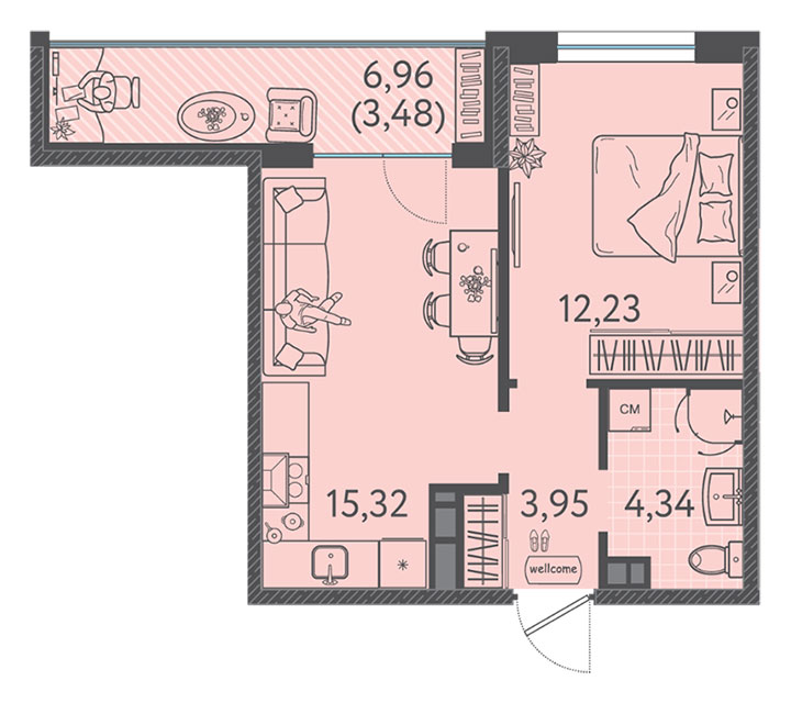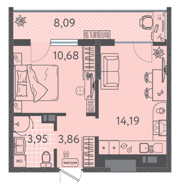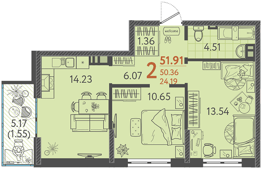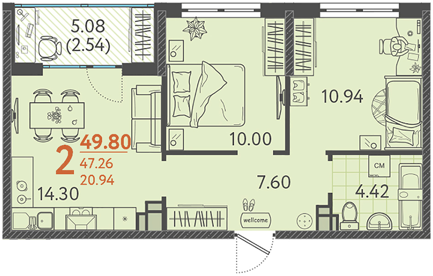 2 49.8 / 20.94 м² от 6 822 600 руб. (137 000 руб./м²) Планировка