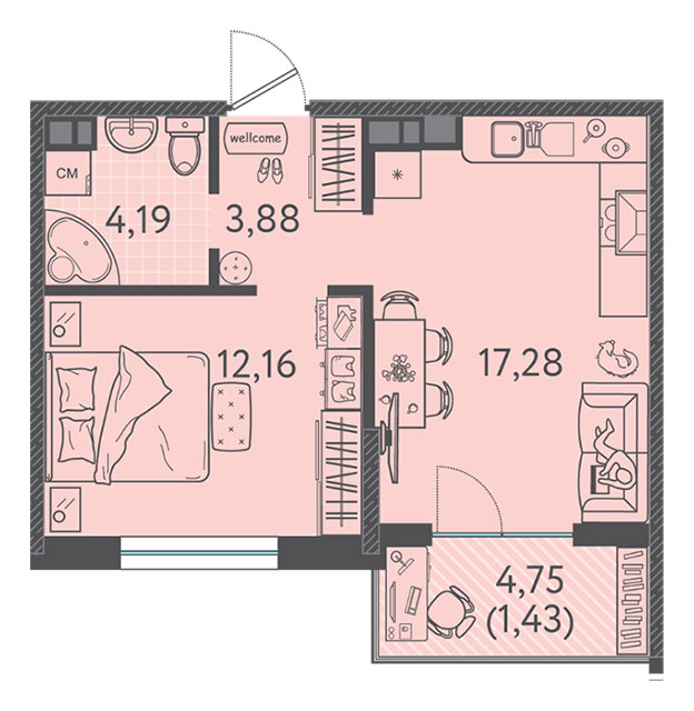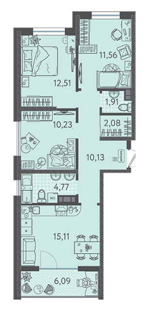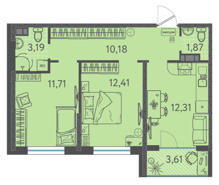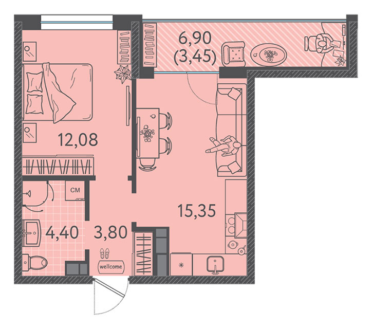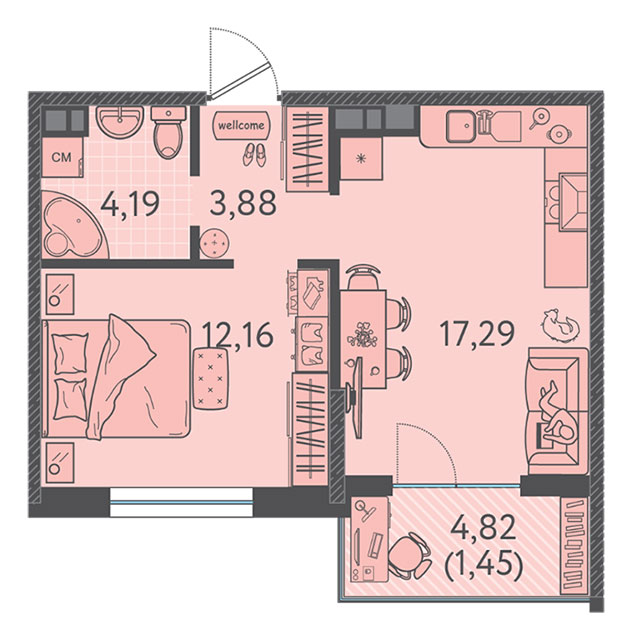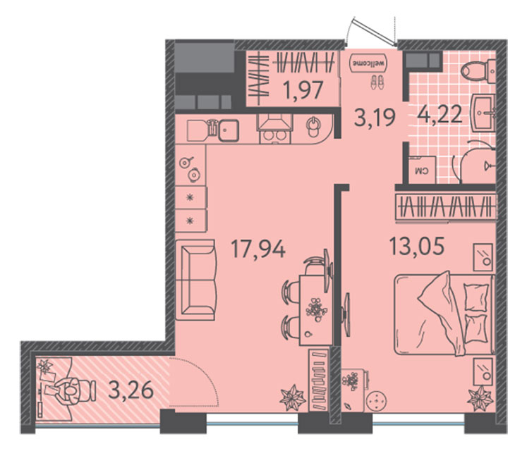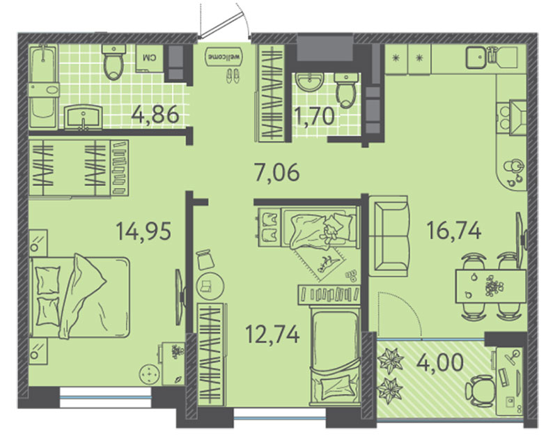 Приветливый менеджер в офисе продаж подобрал для нас ну просто суперскую двушку! Хотя по сути это целая евротрешка, кухня настолько большая, что можно даже небольшую гостиную там обустроить, а в лоджии поставить кресло и неспешно потягивать кофе по утрам.
