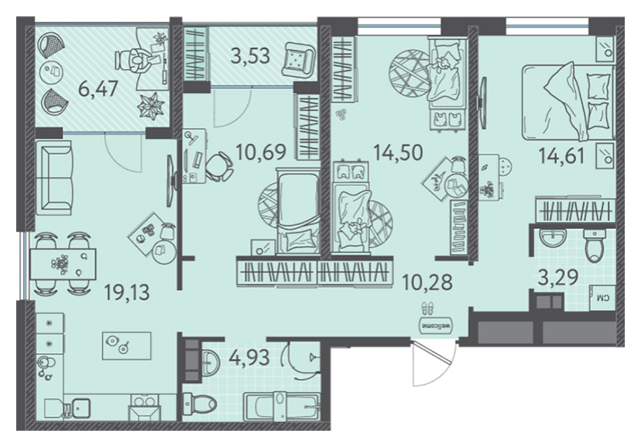 Район развитый, в округе много детских развивашек, закусочных и продуктовых. Своя детская комната у нас тоже будет. Квартиры большие, подходят для многодетных семей. Места хватит всем, у детей даже будут собственные санузлы. Мы в детстве о таком и не мечтали))