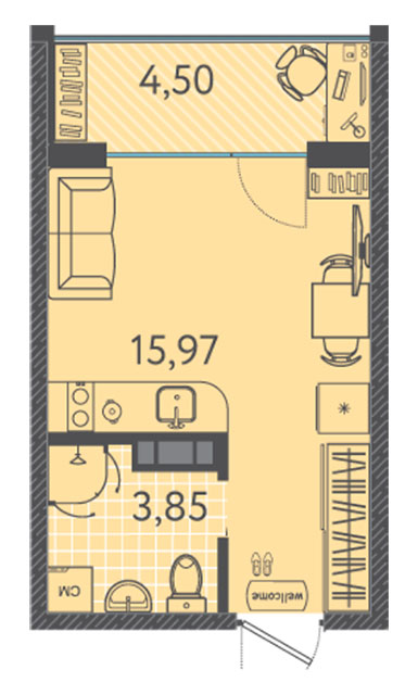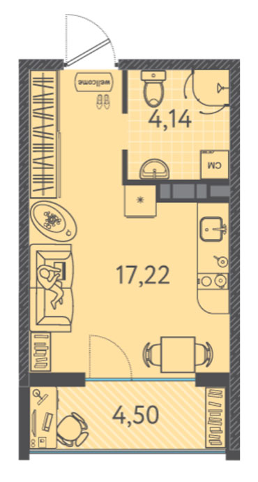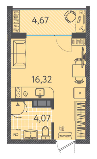 Нужна была квартира чисто для себя, взяла студию в рассрочку от застройщика. Сделаю зонирование кухни и будет та же однушка. Дом с окнами в пол это практично, ну и красиво само собой. Жила в таком, реально позже лампы зажигала, когда прям совсем стемнеет.