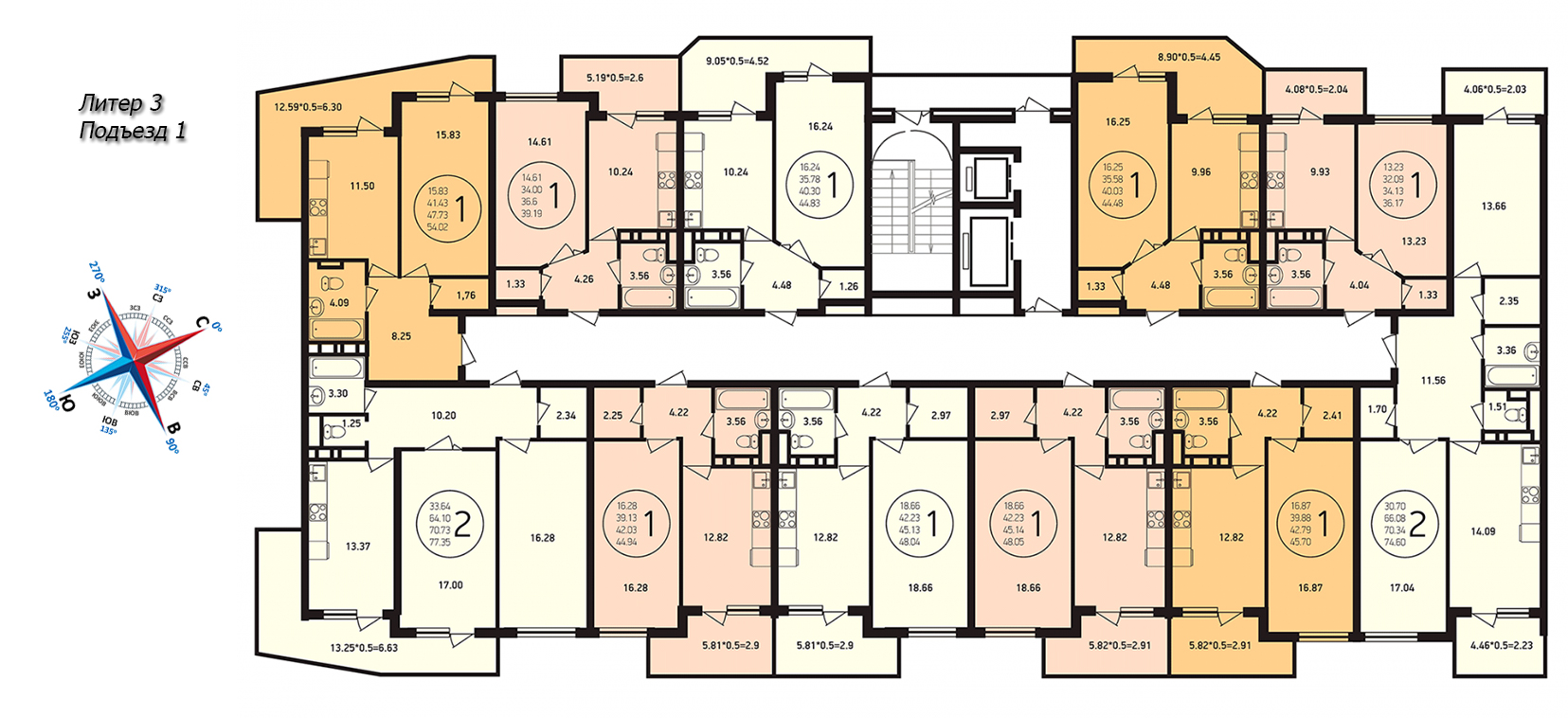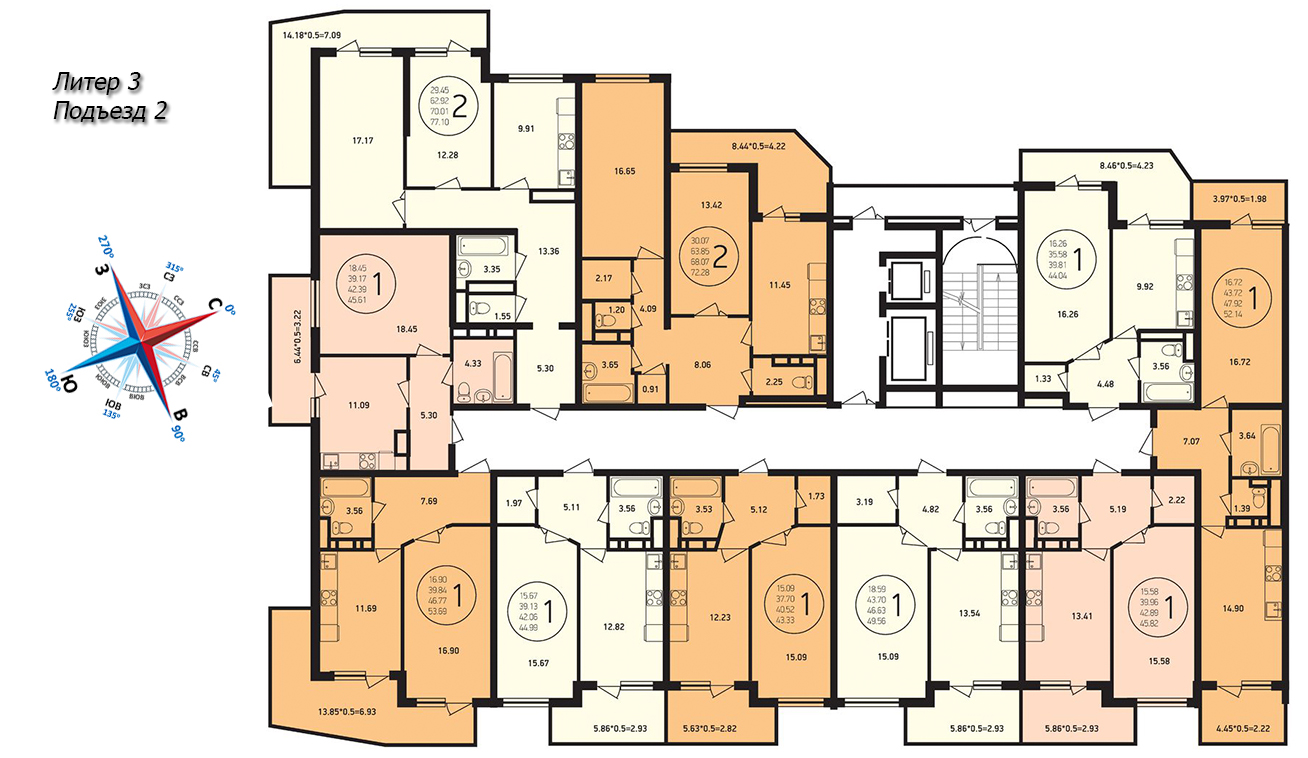 Застройщик предлагает приобрести жильё на 11 этаже 2-х комнатная (77,35 кВ.м)