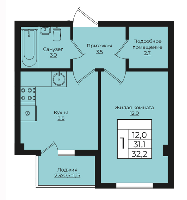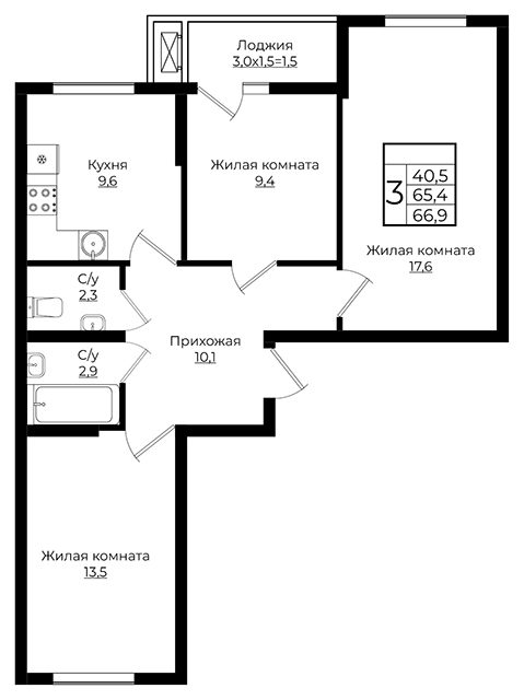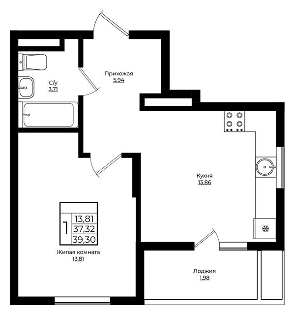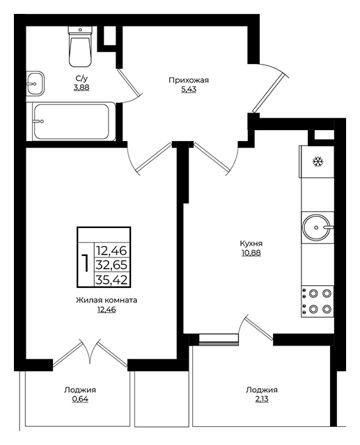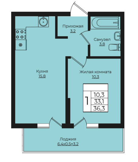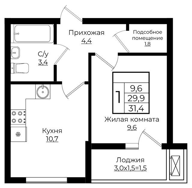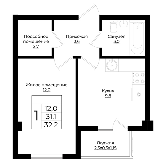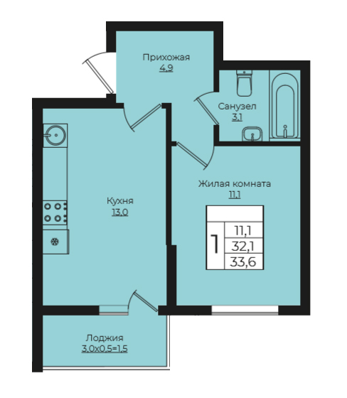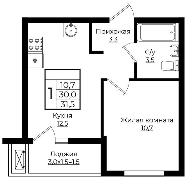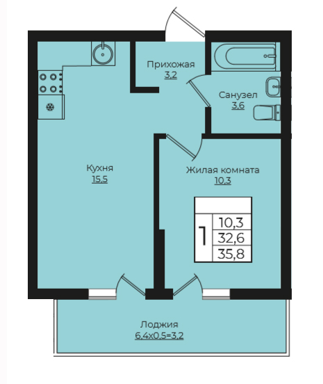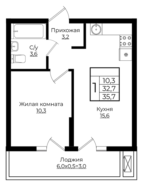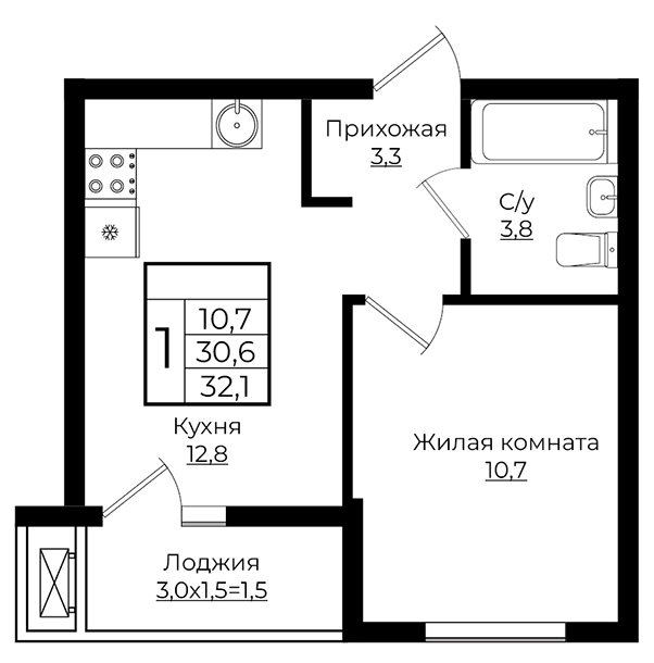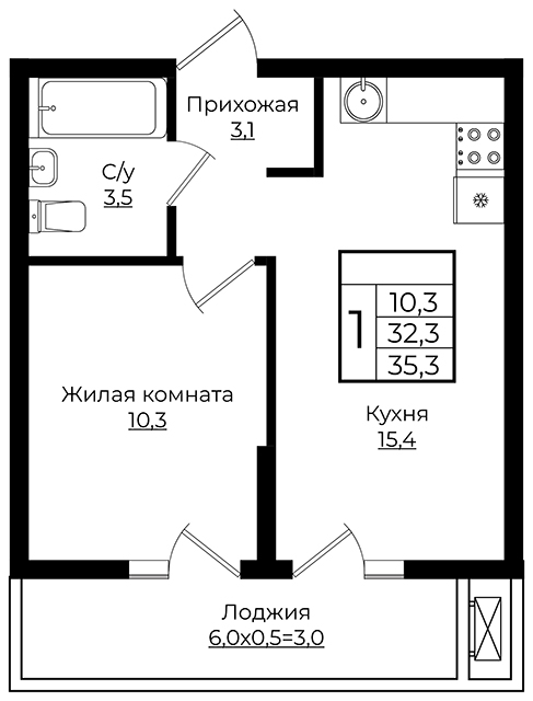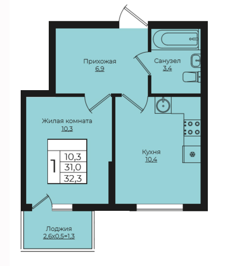 1 32.1 / 10.3 м² от 4 413 750 руб. (137 500 руб./м²) Планировка