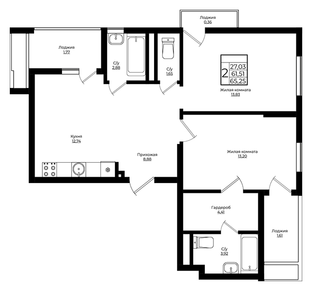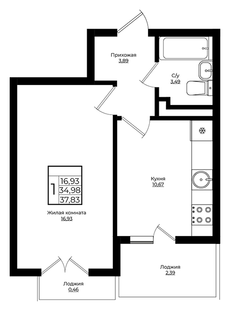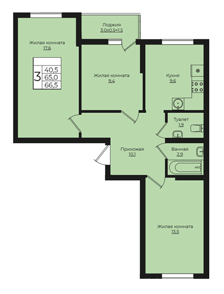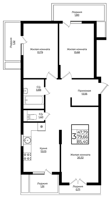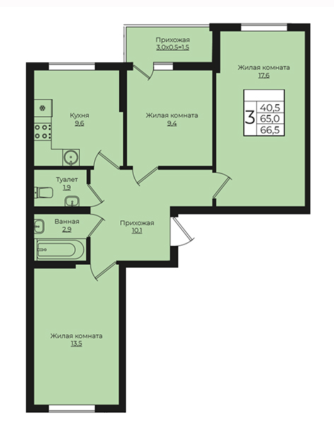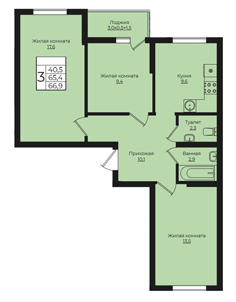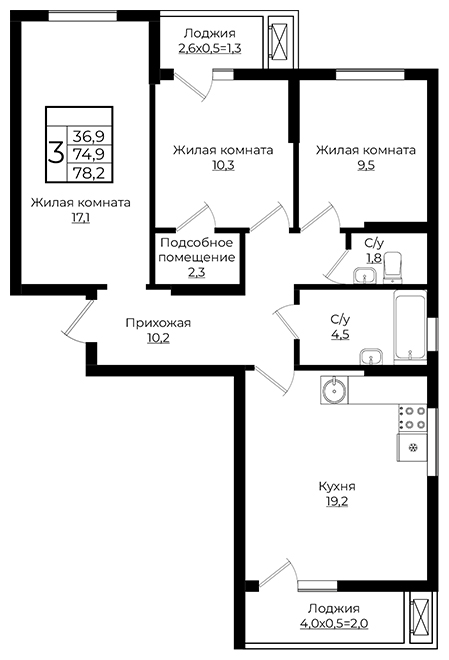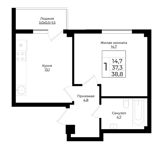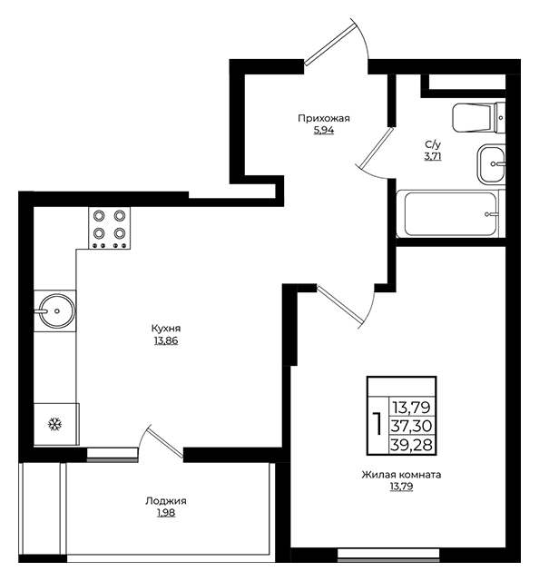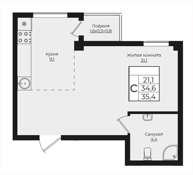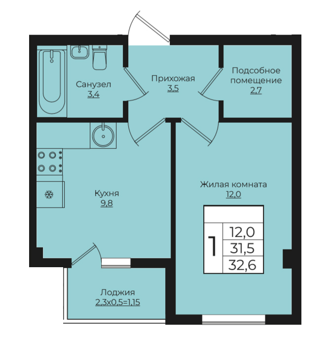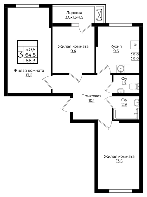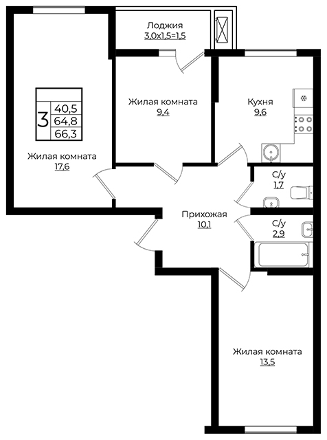 1 32.1 / 10.3 м² от 4 413 750 руб. (137 500 руб./м²) Планировка