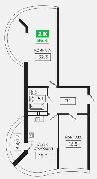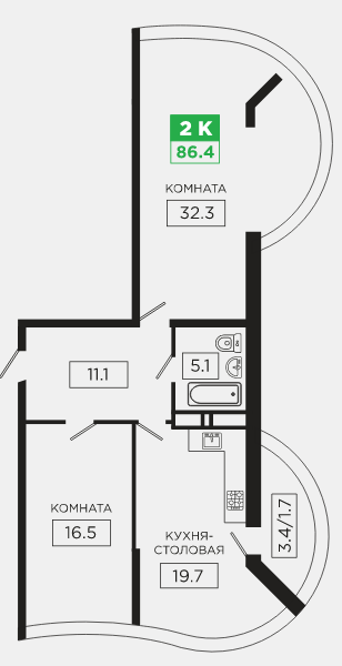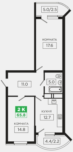 | 2 | 66.8 / 32.4 м² | 8 567 000 руб. | Планировка | Квартира от подрядчика